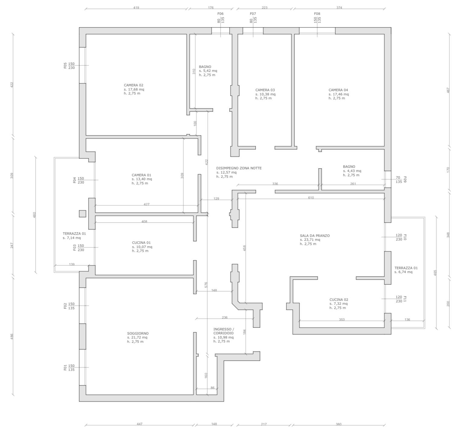 L'appartamento in questione di circa 85 mq calpestabili e' composto da: ingresso, salone di circa 24 mq calpestabili con accesso ad una TERRAZZA ABITABILE di circa 7 mq calpestabili dove in primavera si puo' mangiare tranquillamente, cucina a vista di 8 mq, disimpegno zona notte dove troviamo una camera matrimoniale di 17,50 mq, una camera doppia di 11 mq e bagno padronale!