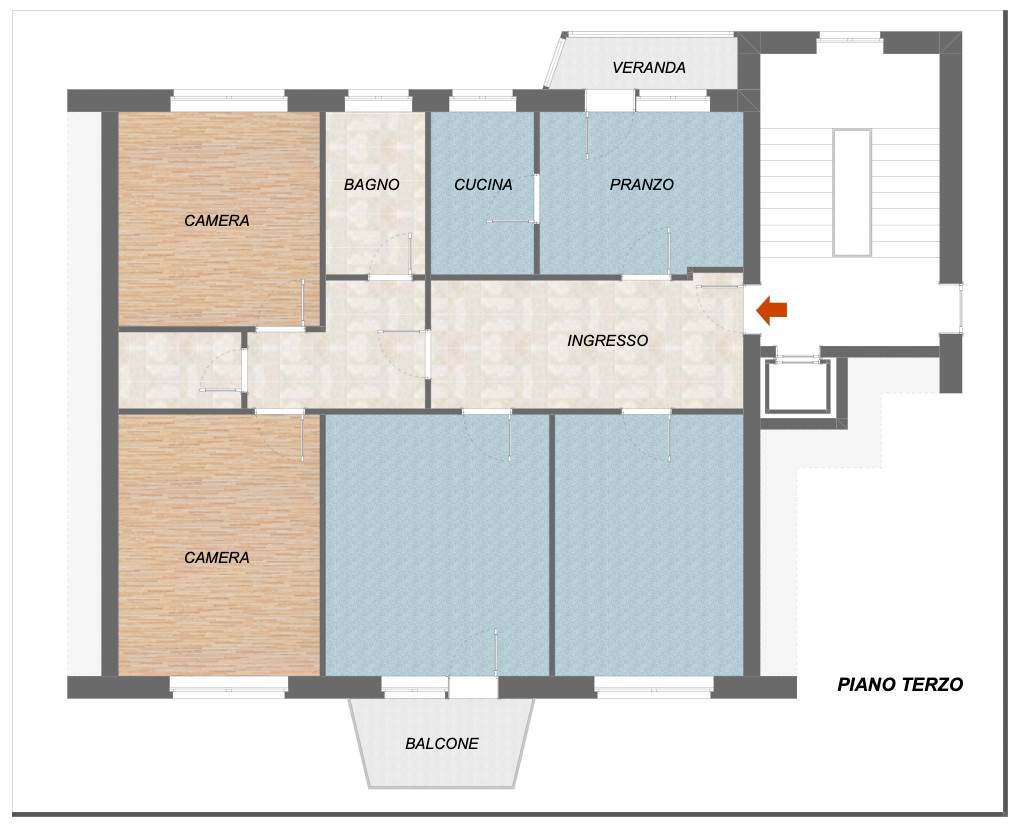 L'appartamento in questione è composto da: ingresso, cucina abitabile con accesso su veranda e cucinino, salone con terrazza, tre camere ampie, bagno padronale e ripostiglio.