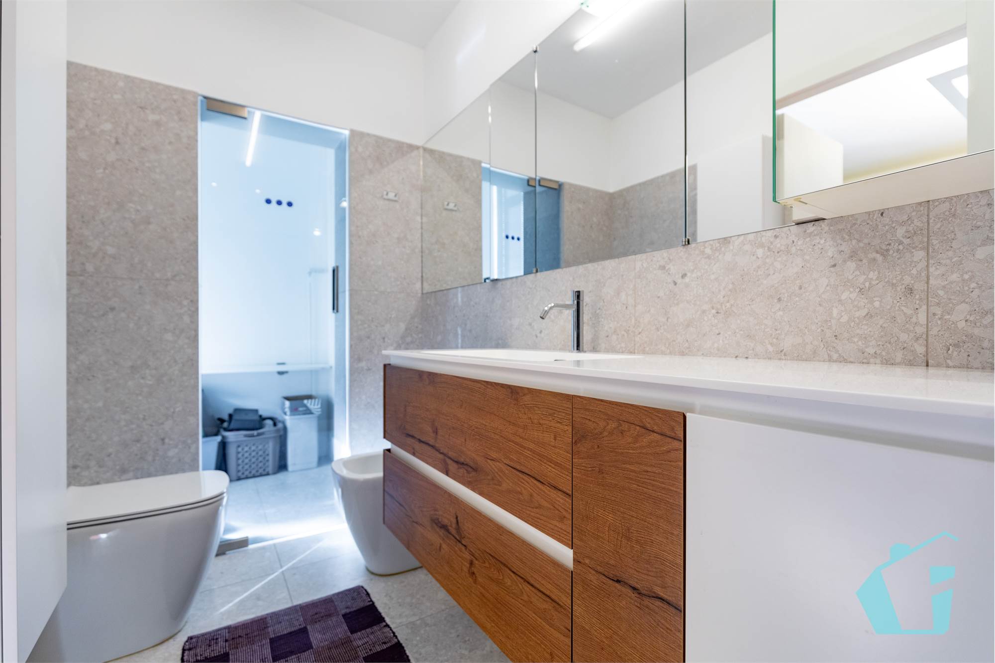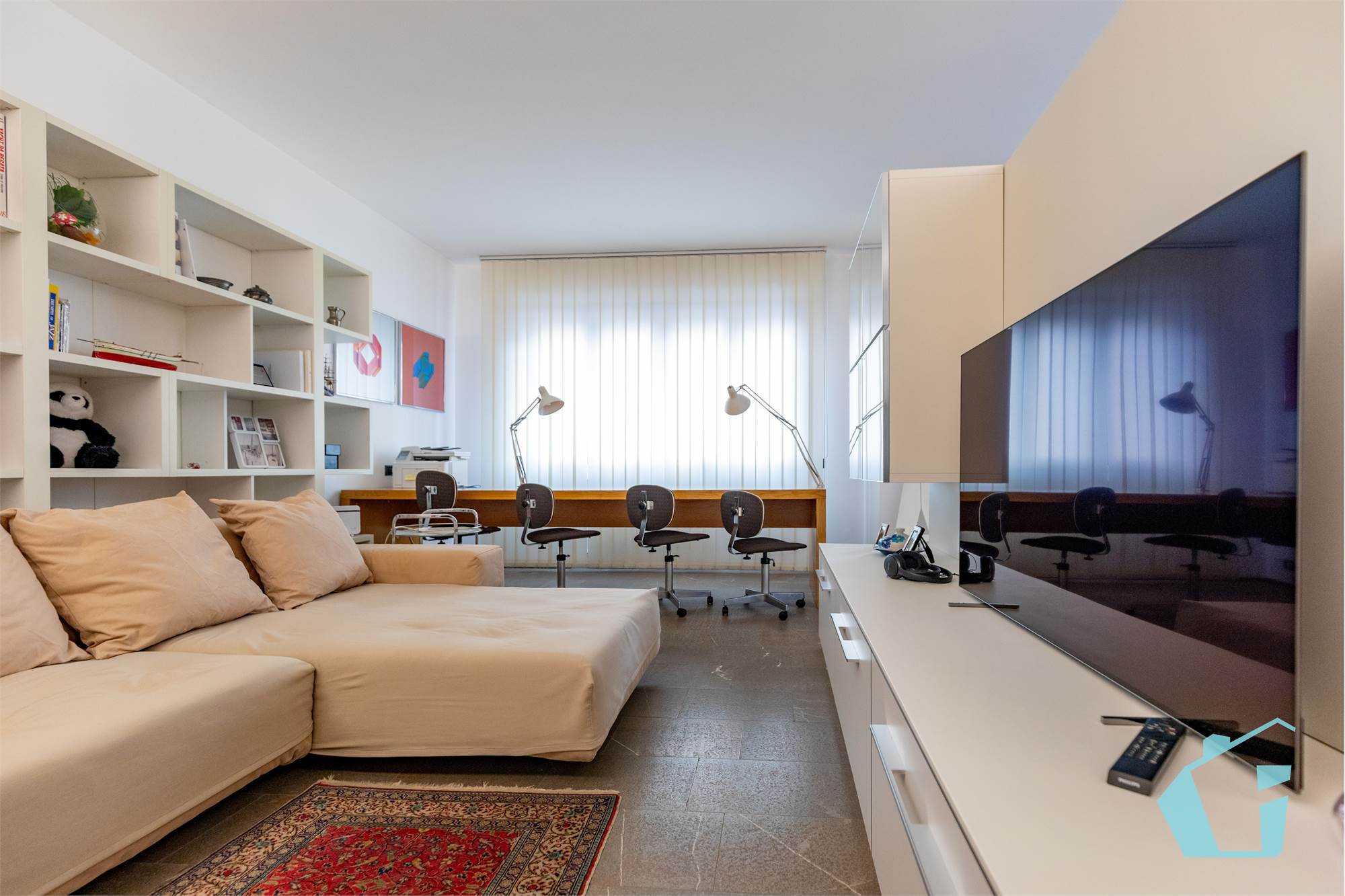 L'appartamento in questione di 144 mq ed è composto da: ingresso, enorme soggiorno di circa 40 mq calpestabili con accesso alla terrazza suddiviso in zona living e comoda sala da pranzo, cucina abitabile con poggiolo verandato; disimpegno zona notte dove troviamo due camere matrimoniali, altra stanza adibita a studio, due bagni finestrati e ripostiglio.