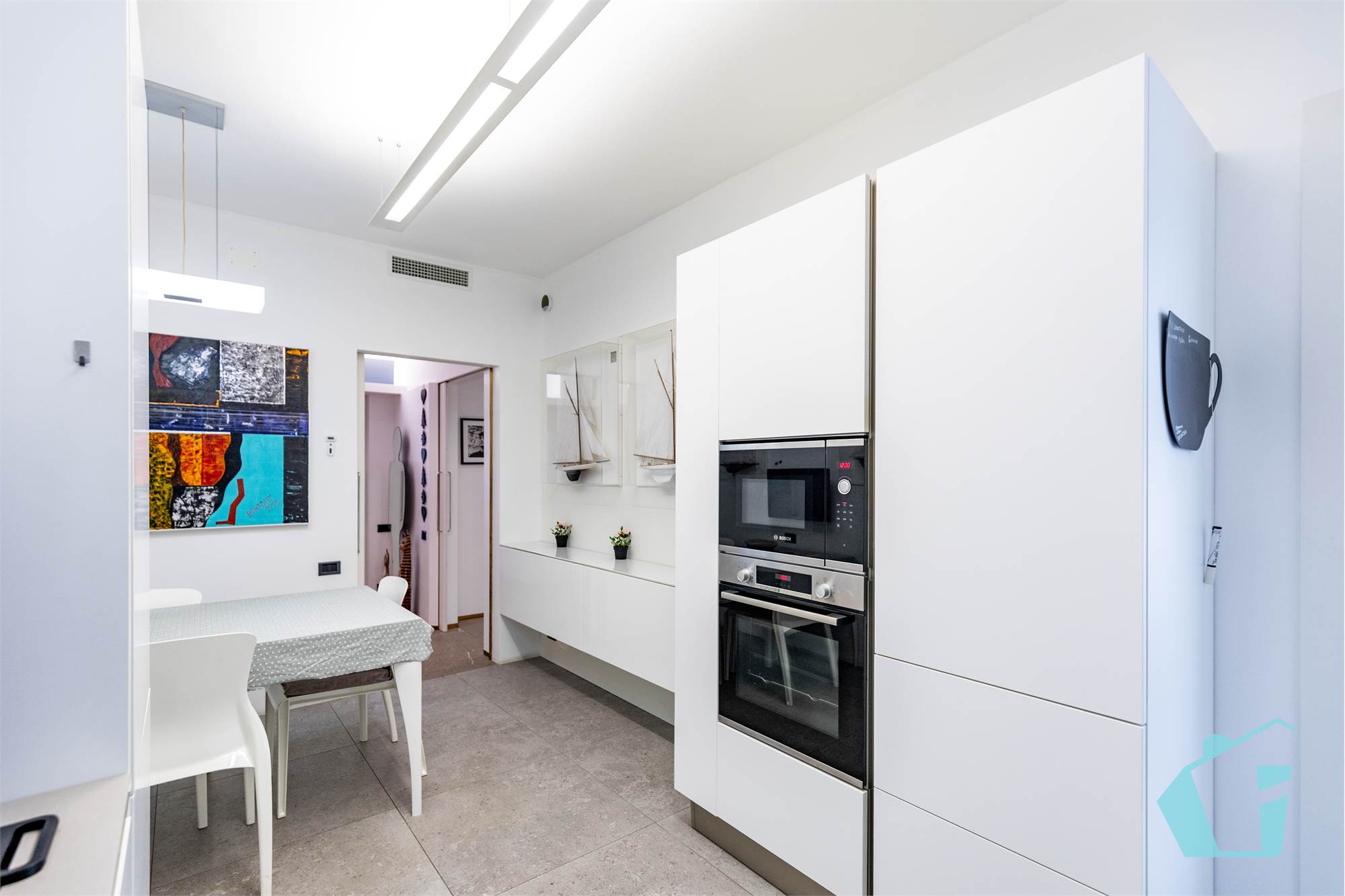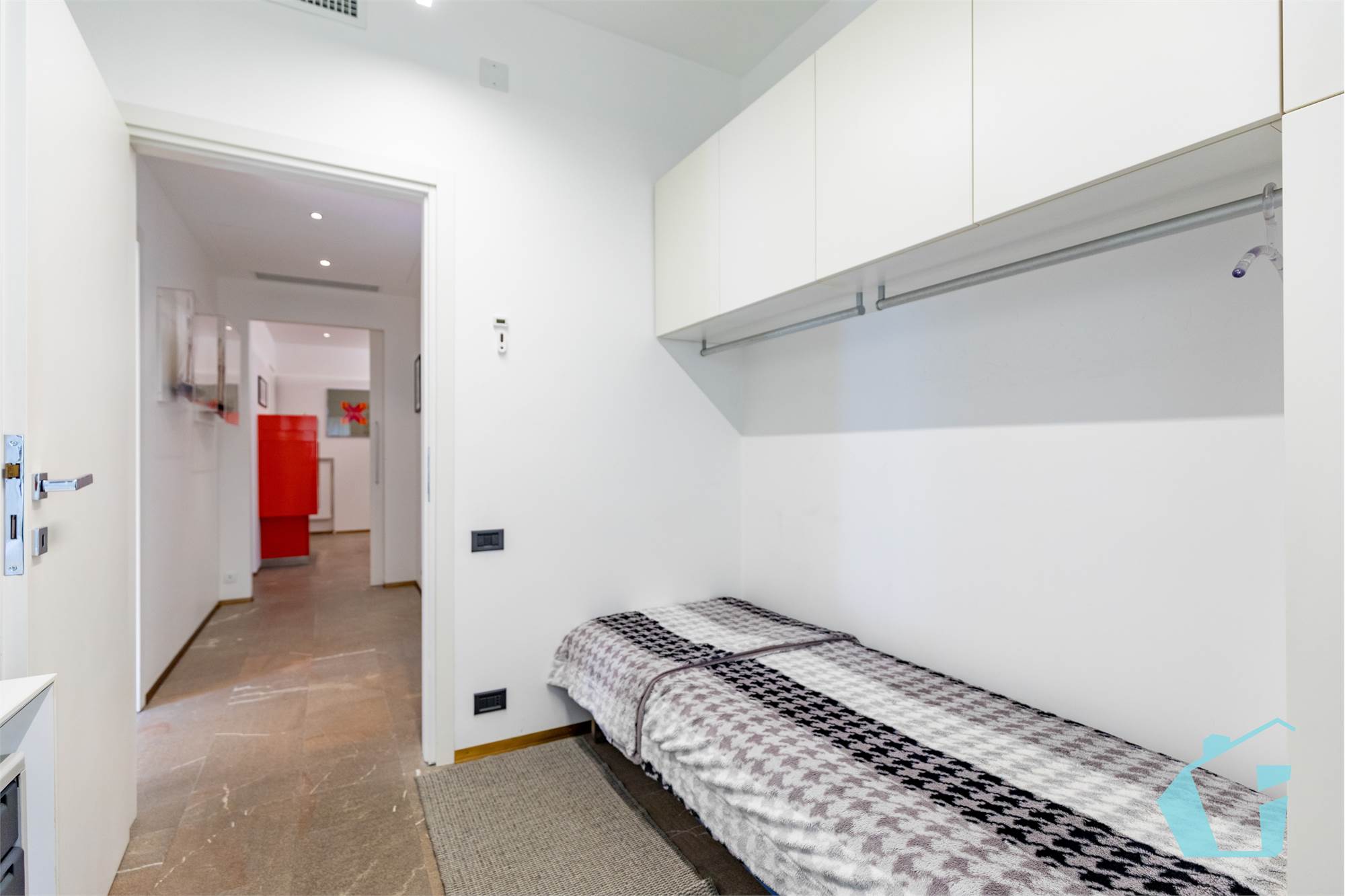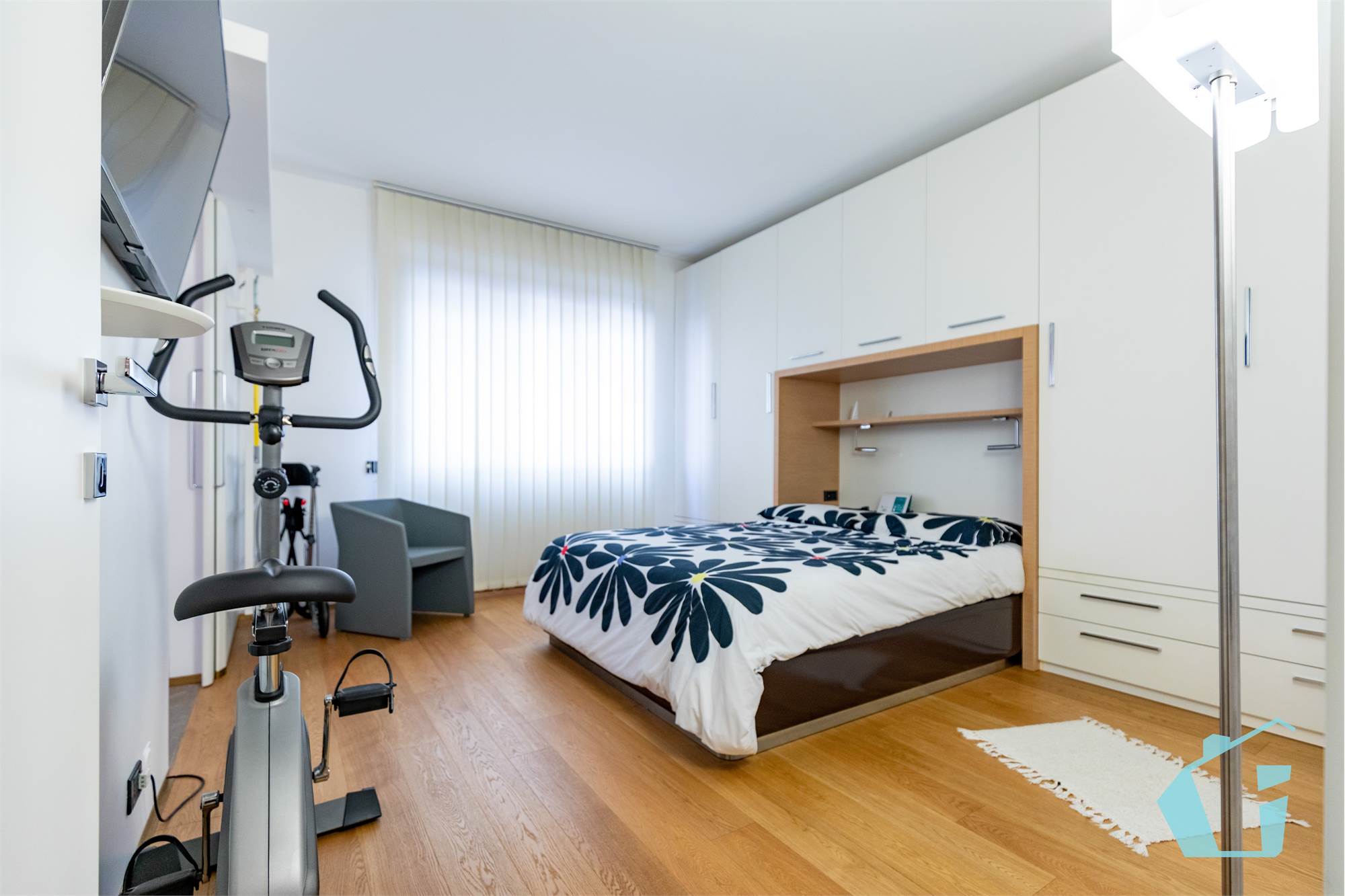 Come finiture abbiamo portoncino blindato, pavimentazione in gress porcellanato zona giorno e parquet nelle camere, bagni in ceramica, porte interne in legno, aria condizionata canalizzata, impianto d'allarme, controsoffittatura in faretti zona giorno e zona notte.