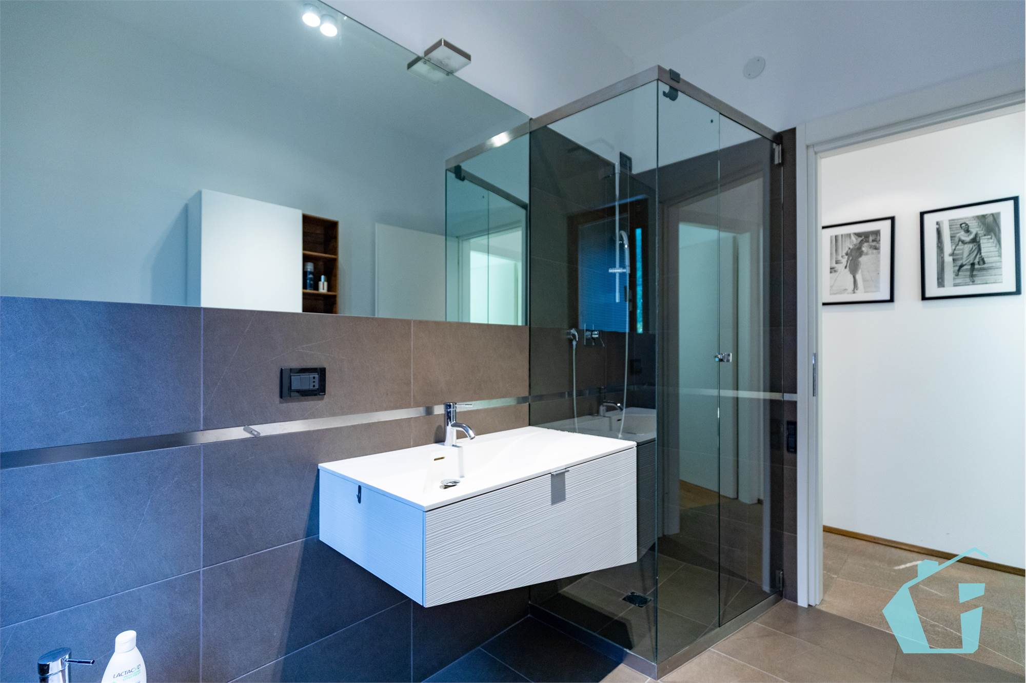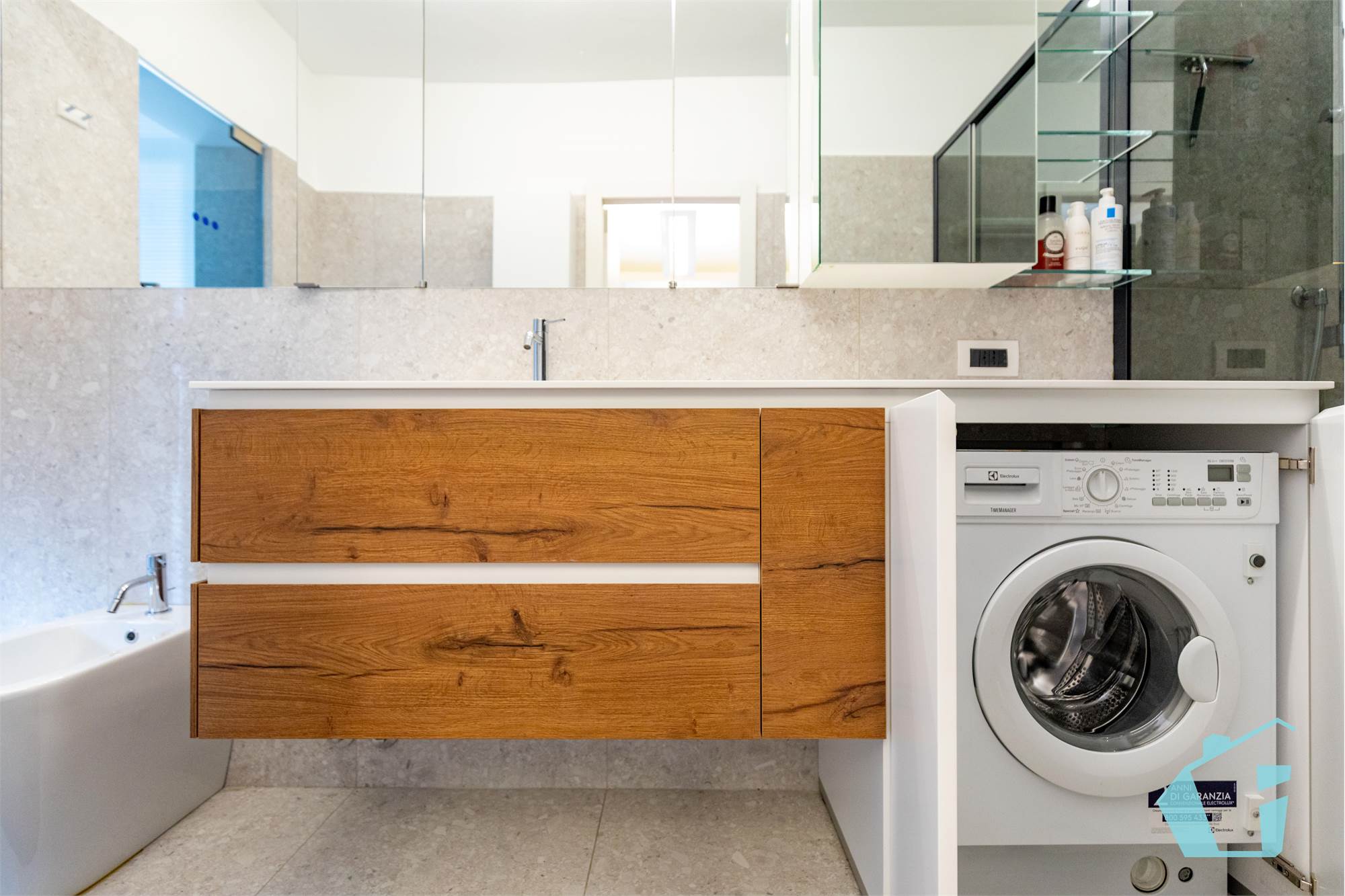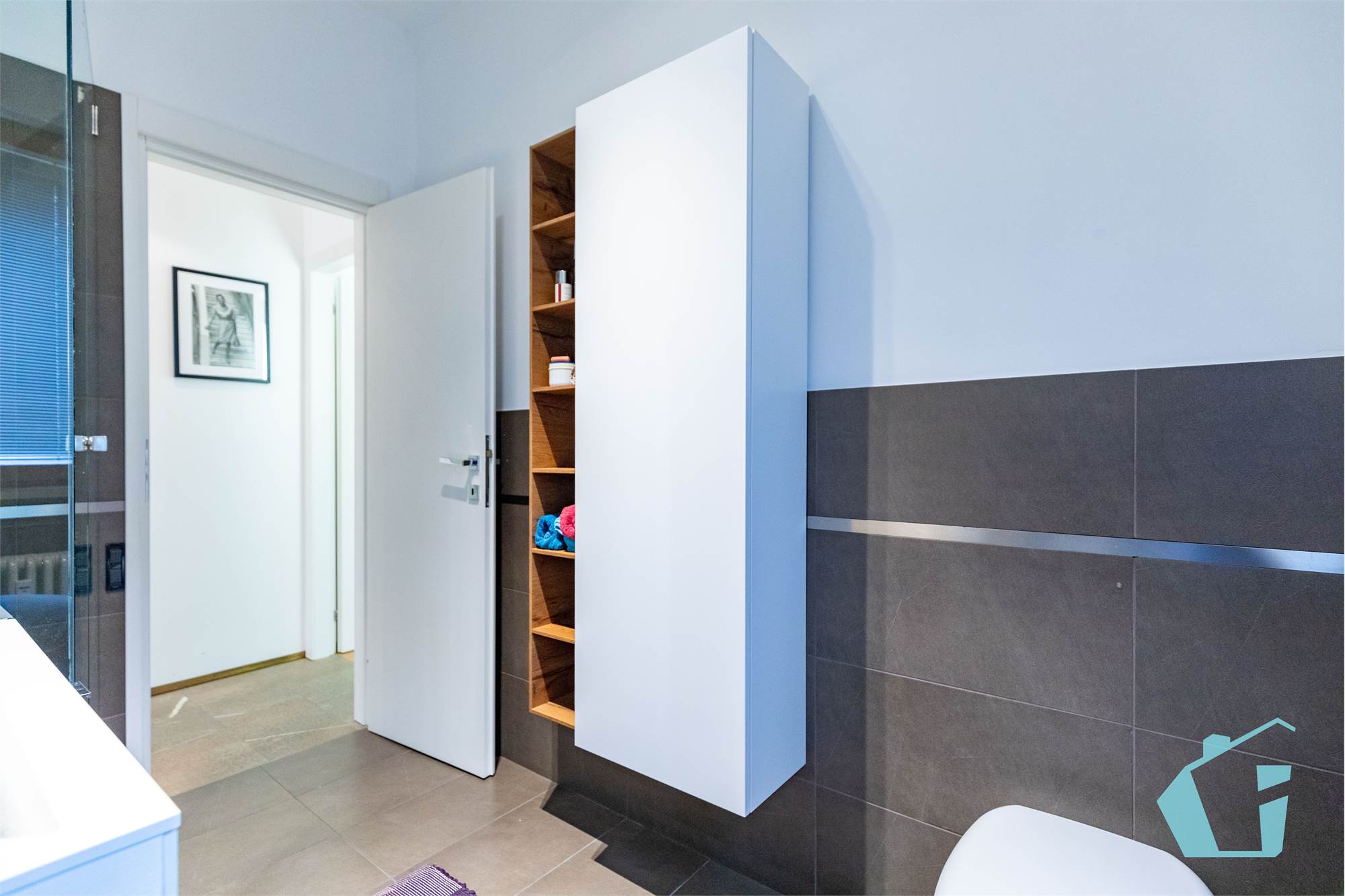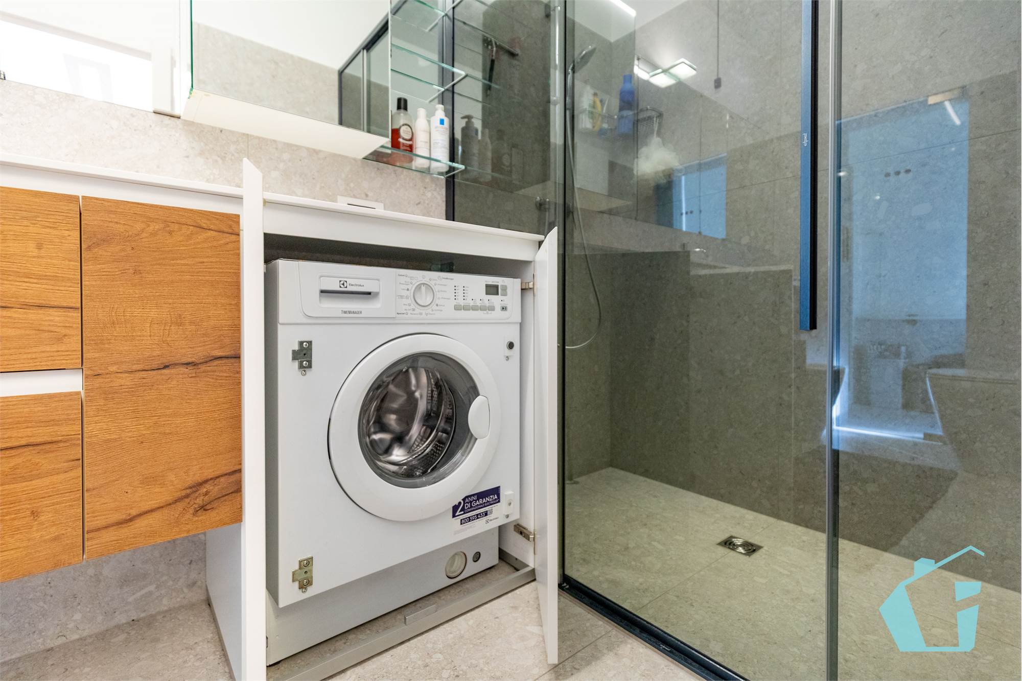 Come finiture abbiamo portoncino blindato, pavimentazione in gress porcellanato zona giorno e parquet nelle camere, bagni in ceramica, porte interne in legno, aria condizionata canalizzata, impianto d'allarme, controsoffittatura in faretti zona giorno e zona notte.