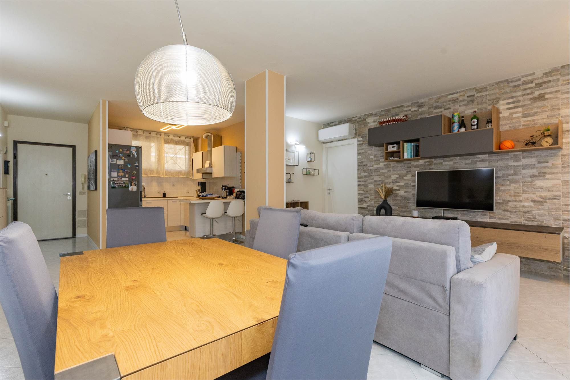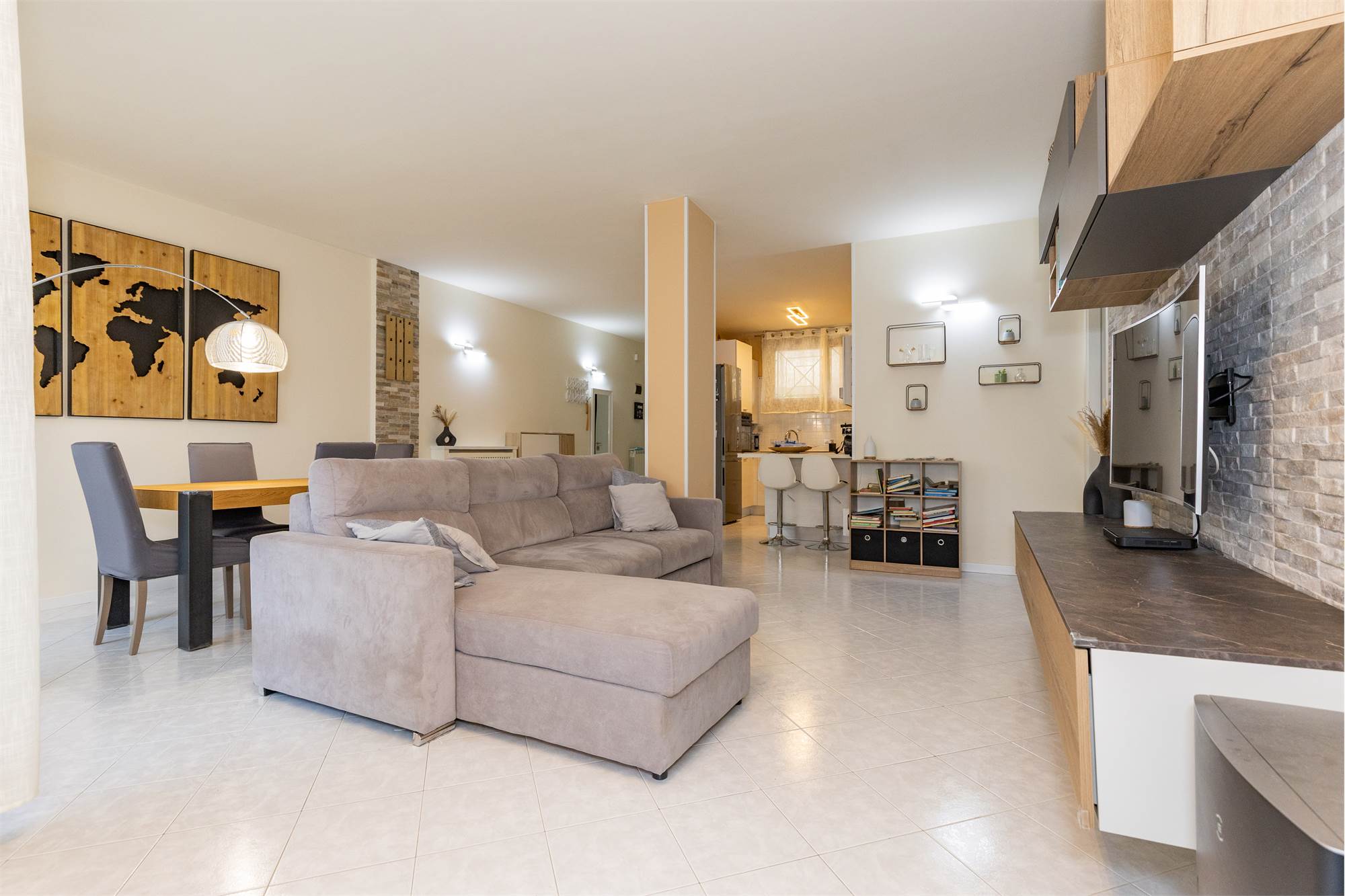Riscaldamento autonomo. Come finiture abbiamo: pavimento in ceramica nella zona giorno e nei bagni, laminato nelle camere, finestre in legno vetrocamera, aria condizionata due split, una in zona giorno e l'altro in zona notte. Soluzione pronta per essere abitata, posizione strategica comoda a tutti i servizi. Soluzione ideale come acquisto prima casa per chi cerca la comodità al centro citta in un'oasi verde.