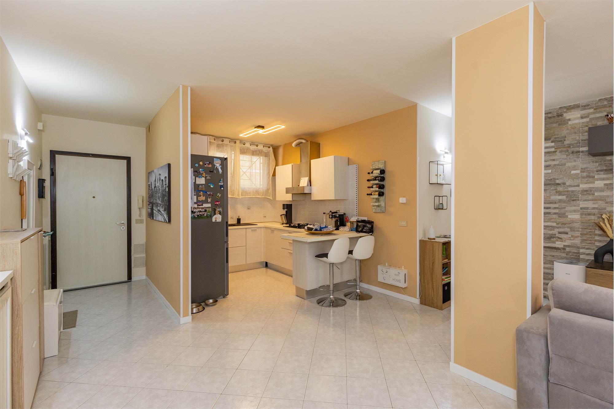 Favaro Veneto, proponiamo appartamento di 100 mq sito al 2° ed ultimo piano con ascensore in contesto del 1994 immerso nel verde. Internamente composto da ingresso su ampia zona giorno con soggiorno-pranzo fornito di splendida cucina a vista e terrazzino che affaccia sul giardino condominiale, disimpegno che porta alla zona notte dove troviamo una spaziosa camera matrimoniale, un' ampia camera singola, bagno padronale con box doccia completamente rifatto nel 2022 e altro bagno cieco. Al piano interrato garage di proprietà di 18 mq ideale per qualsiasi auto.