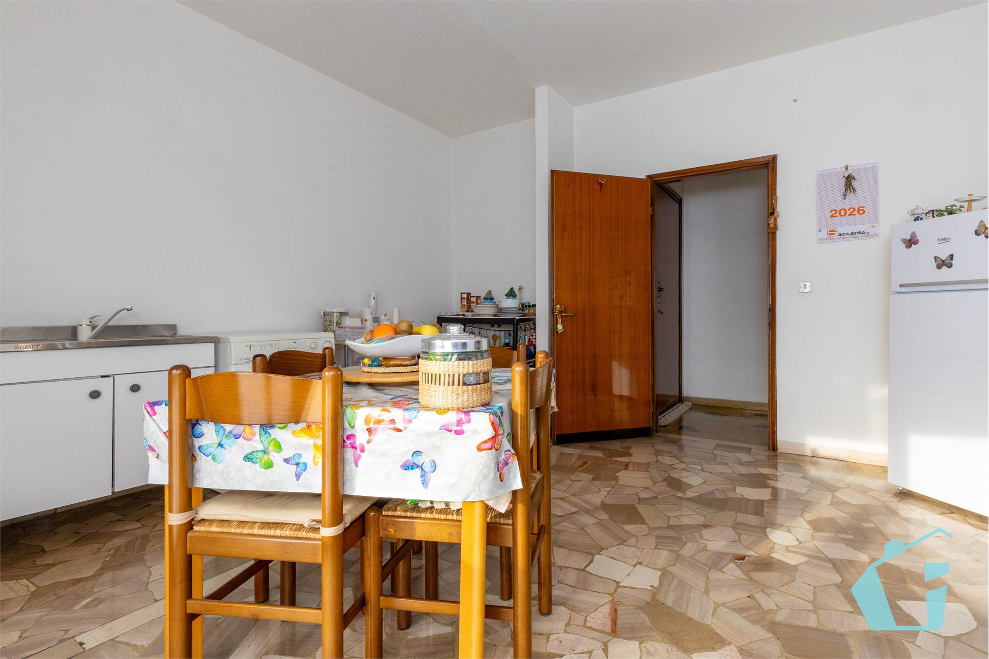 L'appartamento in questione è cosi composto: ingresso, ampia cucina abitabile, soggiorno, due camere matrimoniali di cui una con cabina armadio, bagno padronale e poggiolo. A piano terra garage di proprietà per utilitaria.
